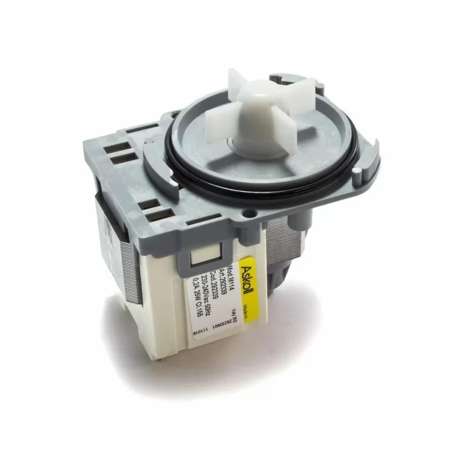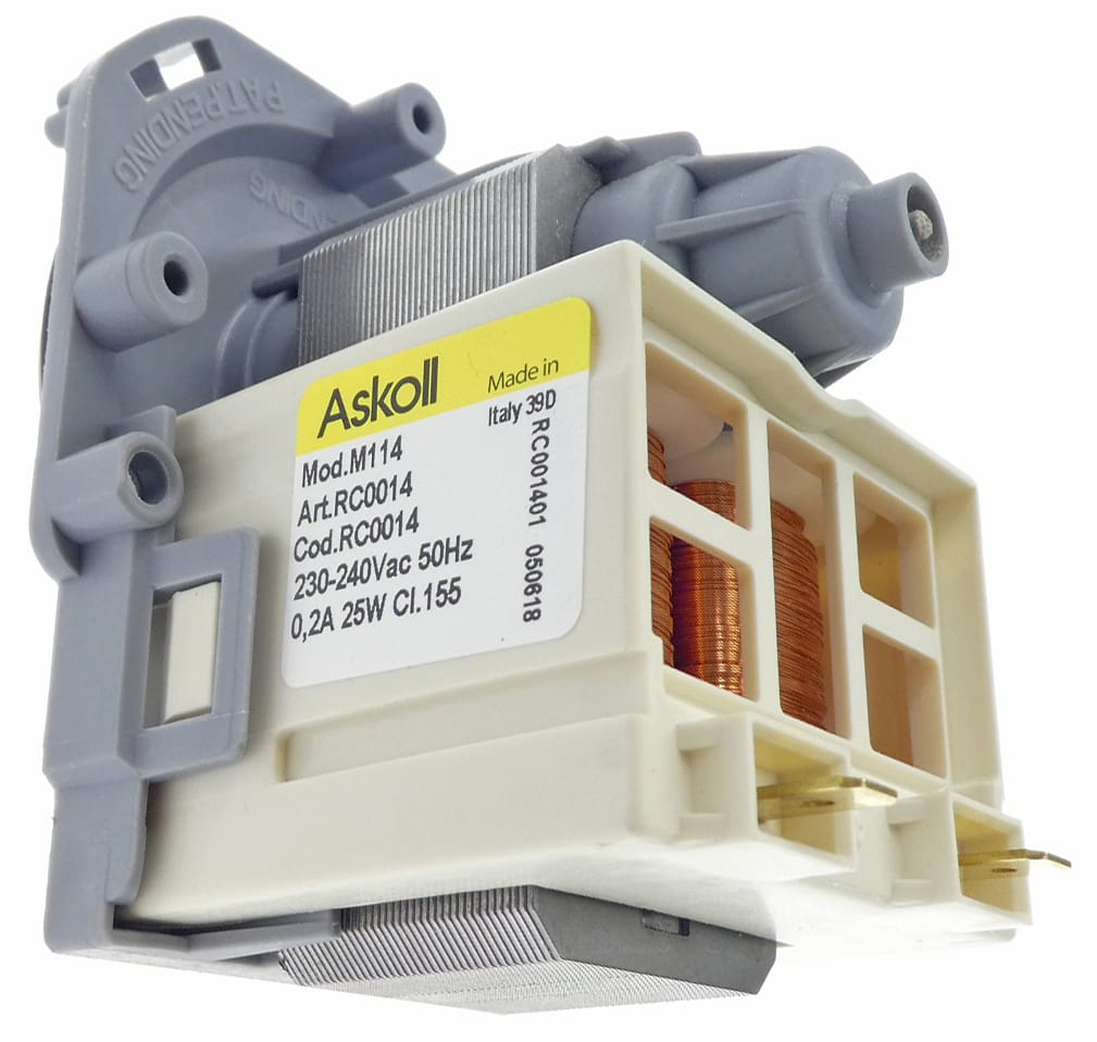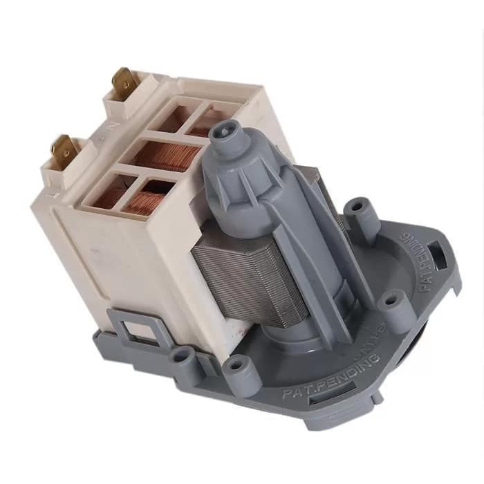 Motor de bomba para lavarropas de carga horizontal, este modelo de bomba se reemplaza girando la carcaza plastica.